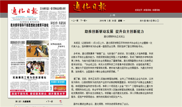 近日,我校科协成立大会在校内召开,受到媒体关注。《通化日报》