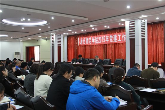 校党委书记王忠作题为《落实从严治党,抓好队伍建设,开创我校党的建设工作新局面》讲话,讲话对2015年度学校党建工作提出了五点意见:一是强化思想引领,以守土有责的态度加强学校党的思想政治建设。加强思想建设,要统筹安排各级党组织和广大党员学习好、贯彻好、落实好党的十八届四中全会和习近平总书记系列重要讲话精神,要在入脑入心上下功夫,对全校党员干部的学习方法进行创新,让教育培训走进党员干部心中,做到知行合一。突出抓好意识形态工作,要牢牢掌握意识形态工作的领导权、管理权和话语权,不断巩固马克思主义在学校意识形态领域的主导地位。进一步加强新形势下宣传思想工作,抓住阵地管理这个重点,加强对大学课堂、讲座、社团、论坛、网络等思想文化阵地的建设与管理,引导师生积极践行社会主义核心价值观,营造健康向上的校园舆论氛围。二是加强基层党建工作,进一步提高基层党组织的战斗力。要落实“一岗双责”, 各级党组织要进一步强化抓党建的主体意识和主动精神,特别是党组织书记,要履行好第一责任人的责任,形成一级抓一级,层层抓落实的党建工作格局。要深入推进党建工作考评机制科学化建设,对于党建工作履职不到位、措施不得力的,要追究责任。要建设服务型党组织,提高服务群众能力,拓宽服务载体和平台,畅通服务群众“最后一公里”。 要切实抓好党员发展工作,确保新发展党员的质量,强化党员日常管理。三是加强干部和党员队伍建设,把从严治党落到实处。要从严做好干部选拔任用,要严格干部日常管理监督,要切实把“三严三实”贯穿干部队伍建设和党员队伍建设全过程。今年,我们要在处级干部中开展“三严三实”专题教育,组织处级领导班子以“三严三实”为主题的专题民主生活会,切实把“三严三实”要求与学习贯彻习近平总书记系列重要讲话精神、学习弘扬焦裕禄精神结合起来,加强党性修养,改进工作作风。四是狠抓作风建设,推动制度治党和依法治校有机结合。要巩固发展好党的群众路线教育实践活动成果,形成工作常态化机制。要采取多项措施正风肃纪,特别要持续抓住重要节点,坚决防止“四风”反弹。要加强制度建设,结合学校实际,制定好我校的各项党内制度、办法,形成党员干部人人遵守法规制度、坚持依法依规办事的良好的环境。五是加强党风廉政建设和反腐败工作,凝聚学校内涵发展的强大动力。要切实抓好“主体责任”与“监督责任”的分解落实,明确党建和廉政建设的责任主体,完善党风廉政建设责任制考核标准。要做好监督工作,突出对重大事项、重点部门、重要岗位、关键环节的监督。要深入开展廉政文化进校园活动,加强领导干部廉洁从政、党性党风党纪教育。要深入推进惩防体系建设,加强廉政风险防控。