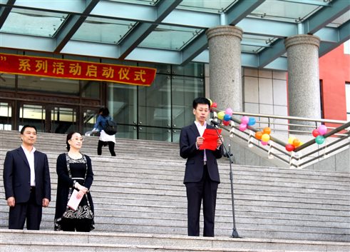 “奔向书海、阅读精彩、绽放青春、拥抱未来”,为了激发大学生阅读兴趣、塑造大学生高尚品质、提高大学生文化修养,促进大学生全面和谐发展和良好校园精神文化氛围的形成,积极创建高品位的校园文化,同时,为了让学生更好地利用图书馆的资源,充分发挥图书馆作用,提高图书馆资源利用率,宣传部、学生处、团委、工会、图书馆联合向全校师生发出了“爱心传递,知识传承”的倡议,并于4月20日上午9:30在校图书馆举行 “书香校园”系列活动启动仪式。启动仪式由宣传部部长卞睿主持,图书馆馆长王波致辞。副校长肖平宣布“书香校园”系列活动正式启动。校党委书记王忠、副校长杨秀祖出席启动仪式。仪式开始之后,举行了图书捐赠、图书漂流和参观传统年画展三项活动。