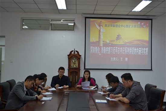 为了认真贯彻落实党的十八大精神,切实加强政法学院党风廉政建设,4月22日下午,政法学院党总支组织召开理论中心组学习扩大会,政法学院党总支书记王娟带领全体党员学习了“深刻领会准确把握习近平总书记系类讲话内涵与实质”,全体党员认真学习,深刻领会,并进行了探讨与交流。