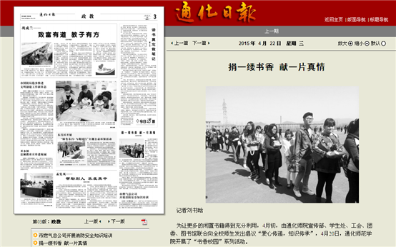 4月22日3版刊登我校图书馆