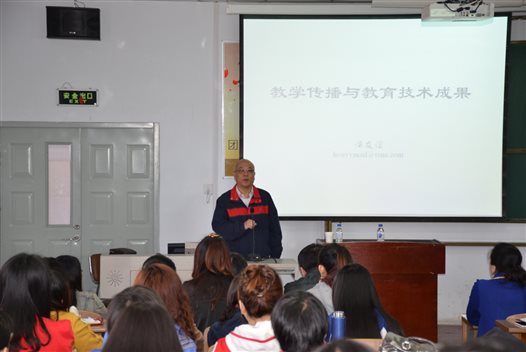 培训中,侯友谊教授结合自己多年的教学经验和教育技术专业委员会评委的工作体会从教学传播策略、媒体的属性、教育技术成果的界定及申报评审等四个方面讲授了什么是教育技术成果,如何有效地运用媒体技术辅助教学。侯友谊教授讲解生动有趣、内容丰富,给老师们留下了深刻的印象。