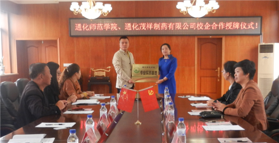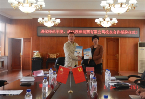 (新闻网讯 制药与食品科学学院报道)9月5日,我校与通化茂祥制药有限公司共建校外实践教学基地、就业实习基地签约揭牌仪式在通化茂祥制药有限公司3楼会议室举行。茂祥公司相关负责人,我校教务处副处长张秋菊,制药与食品科学学院党总支书记徐晶,副院长滕坤、胡彦武,副书记石志丹及正在公司实习的11名学生等参加签约仪式。茂祥公司办公室主任卢彦伯主持签约仪式。