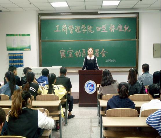 (新闻网讯 工商管理学院报道)为深化学生日常管理,创新公寓管理与服务,助力大学生思想政治教育,工商管理学院于8月31日下午,在第八教学楼215教室组织全院学生干部和寝室长召开工商管理学院“四型”寝室标准化建设工作动员部署大会。学院党总支副书记吴旻、团委书记兼学生工作办公室主任王雯雯、辅导员丛俊日和王婧美参加会议。王雯雯主持会议。