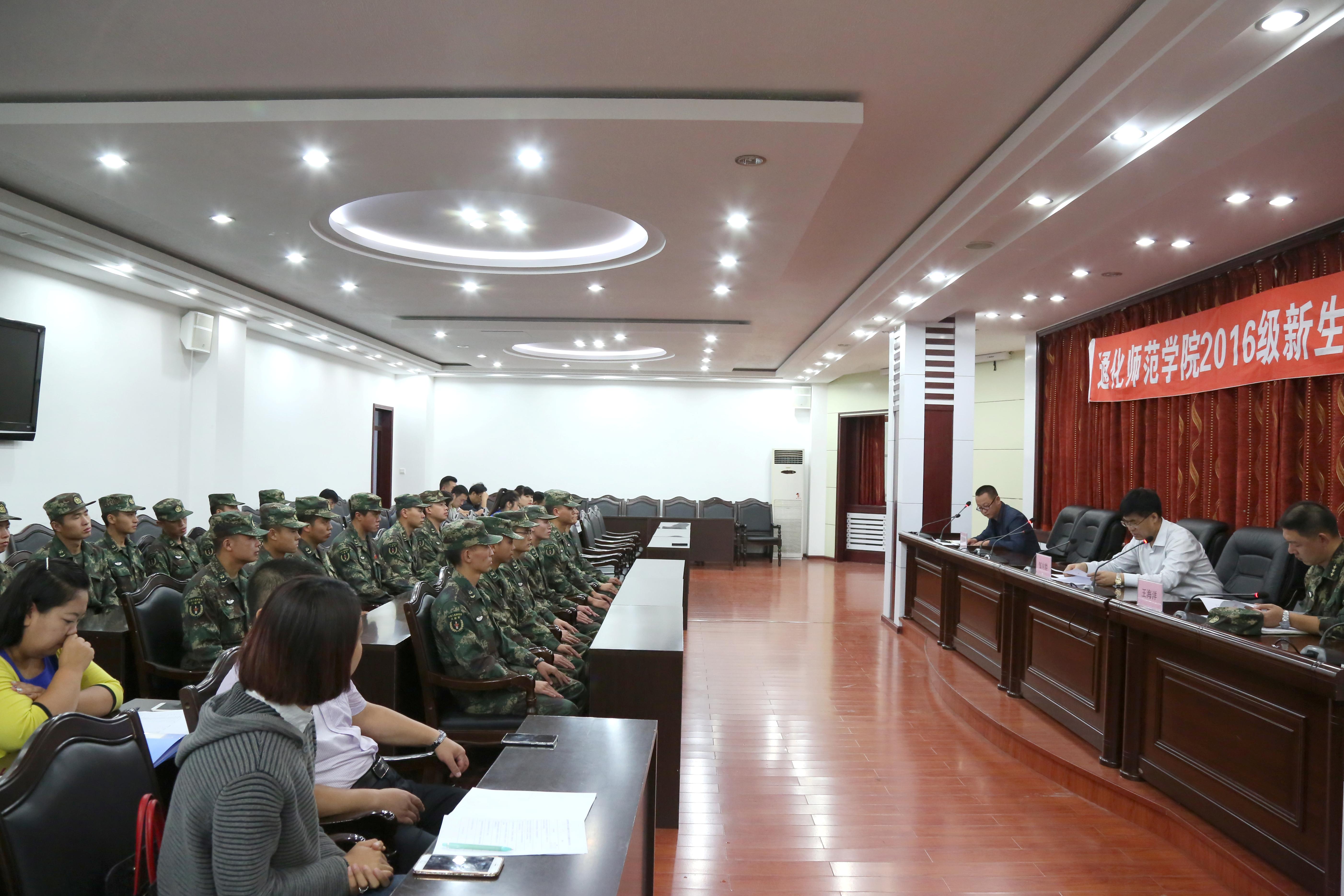 邹向群致欢迎词并代表学校党委向参与本次军训的全体教官表示衷心感谢。他指出,多年来学校和承训部队合作愉快,军地共建取得了丰硕成果,相信本次军训一定能取得圆满成功。邹向群强调,学校历来重视新生的军训工作,这是对大学生进行入学教育的第一课,是大学生思想政治教育的重要环节,通过对新生的严格训练,培养他们的国防意识,锻造他们吃苦耐劳、坚韧不拔的意志,对于学生的成长成才大有益处。他要求,武装部要对军训工作认真组织、精心策划,做好一切服务和后勤保障工作,各学院的学生工作干部要认真做好学生的思想工作,积极配合教官,圆满完成2016级新生军训任务。