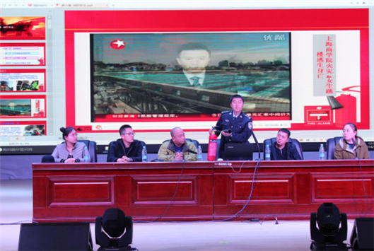 保卫处副处长霍震作了安全教育专题报告。报告结合实际案例,从安全防火、防盗、防诈骗等方面向学生普及了安全知识,介绍了电信诈骗和网络诈骗的特点和手段,传授了识骗、防骗的方法。他还做了现场示范,为同学们讲解了消防灭火器的使用方法。