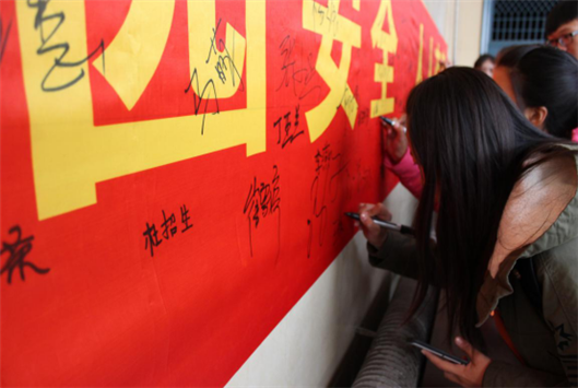 活动中,同学们进行了“校园安全,人人有责”签字承诺活动。