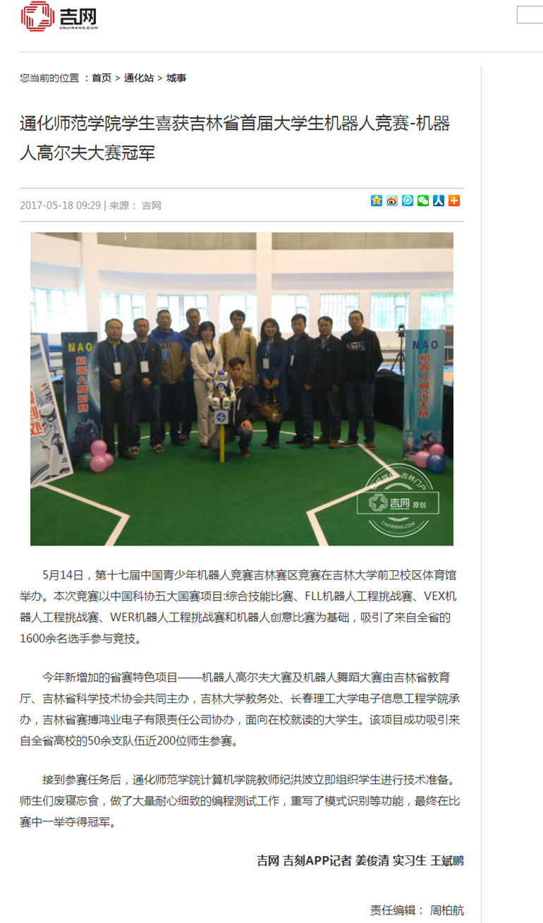 5月18日,中国吉林网报道我校学生喜获吉林省首届大学生机器人竞赛-机器人高尔夫大赛冠军新闻,敬请广大师生关注。