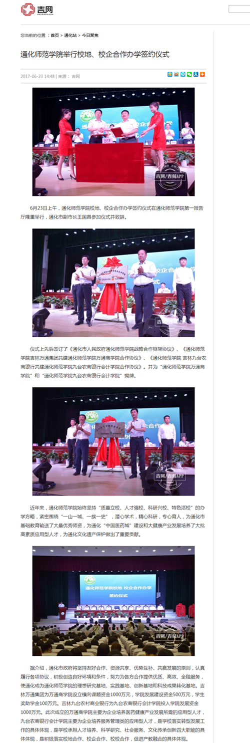 吉林日报、中国吉林网报道我校校地、校企合作办学签约仪式,敬请广大师生关注。