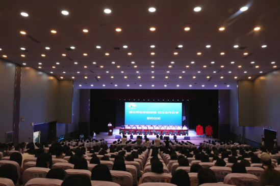 (新闻网讯 李健报道)6月23日上午9时30分,我校与通化市人民政府、吉林万通集团、吉林九台农商银行校地、校企合作办学签约仪式在第一教学楼报告厅隆重举行。