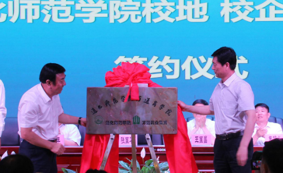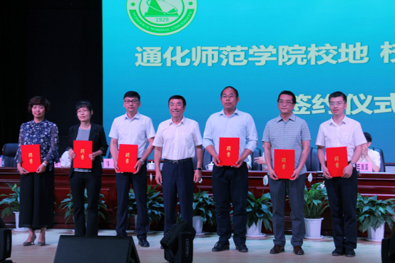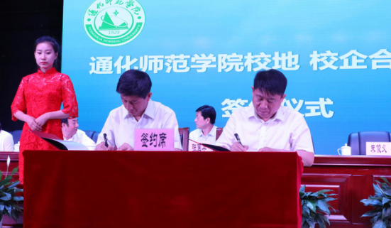 仪式先后签订了《通化市人民政府 通化师范学院战略合作框架协议》《通化师范学院 吉林万通集团共建通化师范学院万通商学院合作协议》《通化师范学院 吉林九台农商银行共建通化师范学院九台农商银行会计学院合作协议》,校党委书记张国华与吉林万通集团董事长潘首德、吉林九台农商银行通化分行行长王岩杰分别为“通化师范学院万通商学院”和“通化师范学院九台农商银行会计学院”揭牌。